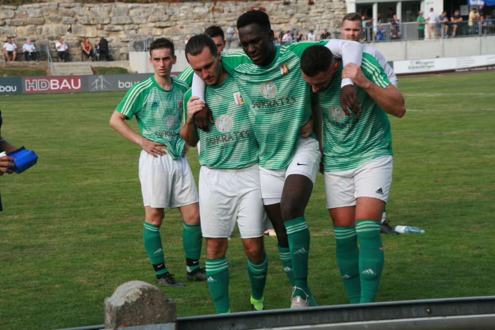 Im Bild: Im Hinspiel am 26. September in Michelfeld verletzte sich der damalige Spielertrainer des ASV Forth Vignon Amegan (vorne, 2.v.r., schon in der Regionalliga aktiv) ohne Femdeinwirkung schwer und musste in der 56. Minute ausgewechselt werden. Diagnose: Achillessehnenriss am linken Fuß. Seit Anfang Oktober ist Andreas Tröger (30, aus dem eigenen Verein) der neue Chef-Coach an der Außenlinie.
