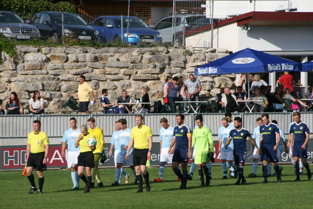 Michelfeld (obl/ss) Die zwei Fußball-Herrenmannschaften des ASV Michelfeld erhielten von Sponsor Thomas Trapp (Beschriftungen Trapp, Welluck; 3.v.l., mit weißen T-Shirt und Sonnenbrille) einen Satz Aufwärm-Shirts. Vor dem Heimspiel der “Ersten” am Sonntag, 30. April gegen die SG Oberes Pegnitztal…