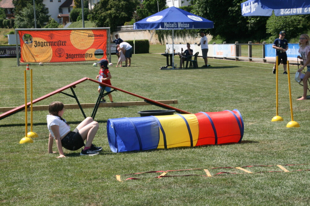 Um 13.30 Uhr begann die 1. Michelfelder Kinder-Olympiade mit sieben Stationen –darunter sechs auf dem A-Platz (Kübelspritzen/Feuerwehr, Transportspiel/Tennisclub, Fußball-Slalom/ASV, Warrior-Parcour/ASV, Ballwurf/ASV und Torwandschießen/ASV) und eine auf dem Kleinfeld-Areal (Pfeil- und Bogenschießen/Schützenverein). Vier örtliche Vereine kooperierten sehr gut miteinander und lockten 98 Kinder ohne Voranmeldung und ohne Altersbeschränkung als Teilnehmer an. Diese Super-Resonanz lag bei weitem über den Erwartungen, die zwischen 30 und 70 lag. Mit einer Laufkarte am Bande konnte man die sieben Stationen ohne Zeitdruck und ohne Punktesystem in einer frei zu wählenden Reihenfolge erledigen. Nach einer absolvierten Aufgabe ging es mit einem erfassten Vermerk auf der Karte weiter zur nächsten Station. Organisator Michael Böhm war nach der rund zweieinhalbstündigen Veranstaltung, die sichtbar die Dorfgemeinschaft in Michelfeld über alle Generationen hinweg stärkte, ebenso wie Thomas Gsell (Vorstand Fußball) glücklich und äußerst zufrieden. Die Anstrengungen und Vorarbeiten hatten sich gelohnt: „Wir haben das alles super gerockt und alle haben zusammengelangt. Wir werden es nächstes Jahr wieder machen“, meinte Gsell als Fazit und Ausblick. Das 2. Flembachrauschen 2024 soll als zwei- oder dreitägige Veranstaltung (möglichst wieder mit einem Preisschafkopf) voraussichtlich zwei Wochen später, also etwa Mitte Juli 2024 stattfinden.